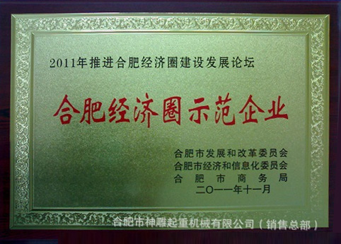 ??2011年推進合肥經濟圈建設發展研討會于11月27日上午在合肥稻香樓賓館召開,市領導發表講話。我公司被授予“合肥經濟圈示范企業”稱號。研討會本著“開發園區共建  加速安徽崛起”的主題,分析了與南京經濟圈、武漢經濟圈競合關系的變化趨向,合肥經濟圈的東擴與江淮城市群的崛起,以及合肥經濟圈一體程度的提升等主要內容。